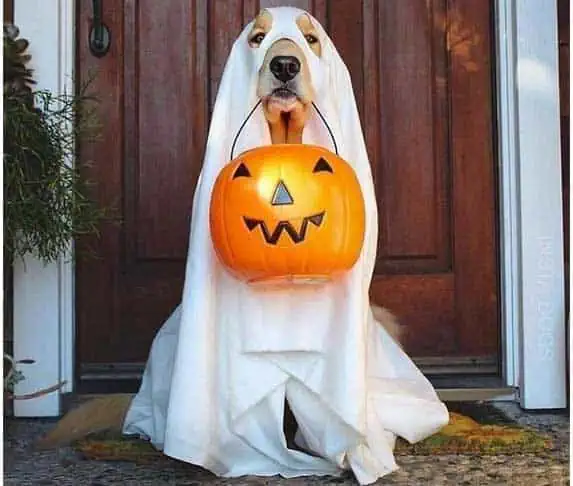 The ghost costume is a classic Halloween favorite for dogs.